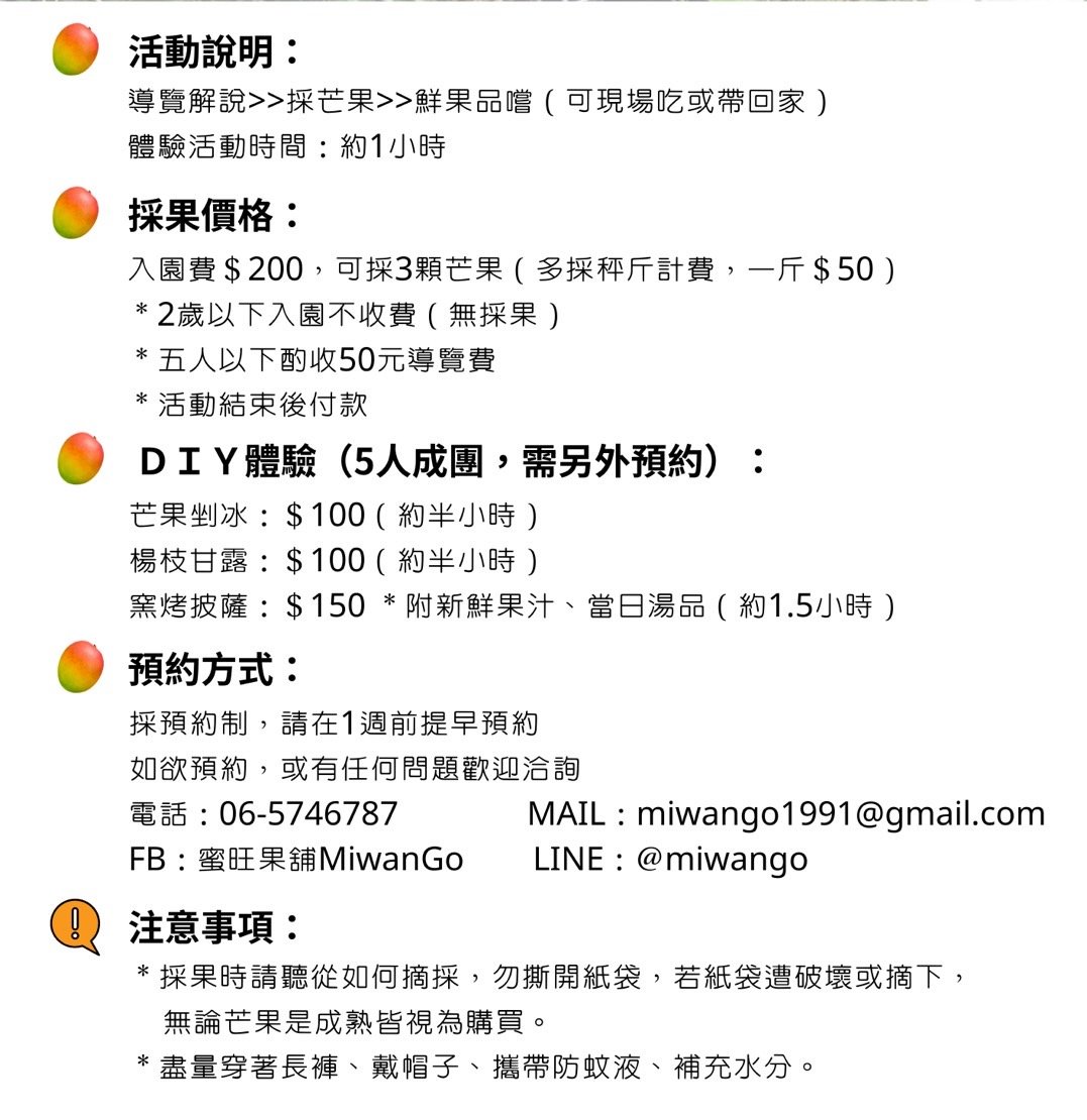蜜旺果園採果趣(另可報名DIY體驗)~需提早一週預約